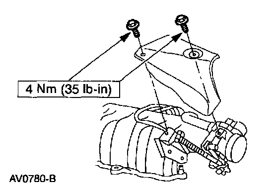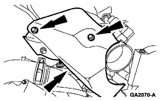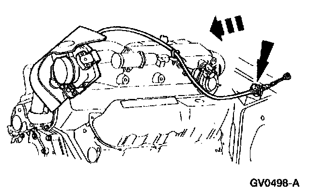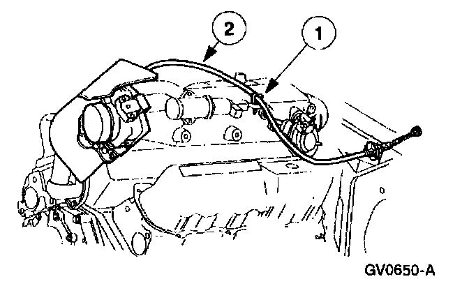 NOTE: The accelerator cable should be routed over the air conditioning lines and under the power brake and speed control vacuum hoses.