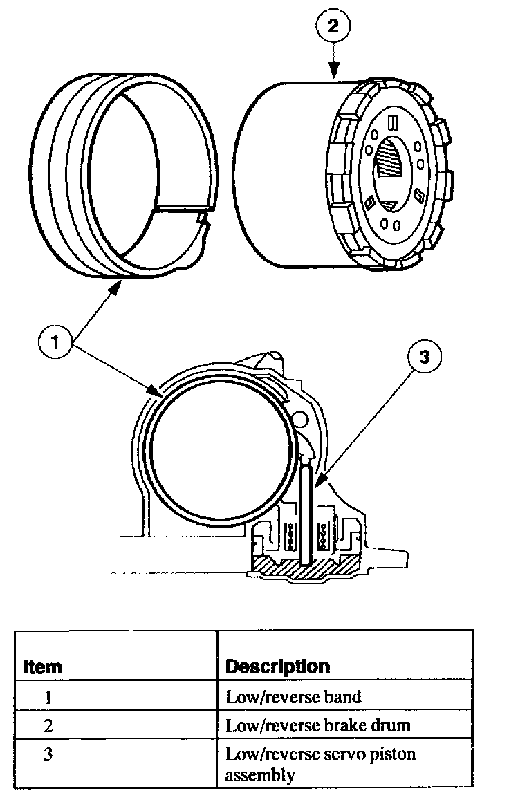 - The low/reverse band holds the low/reverse brake to the case in 1st position and reverse gears.