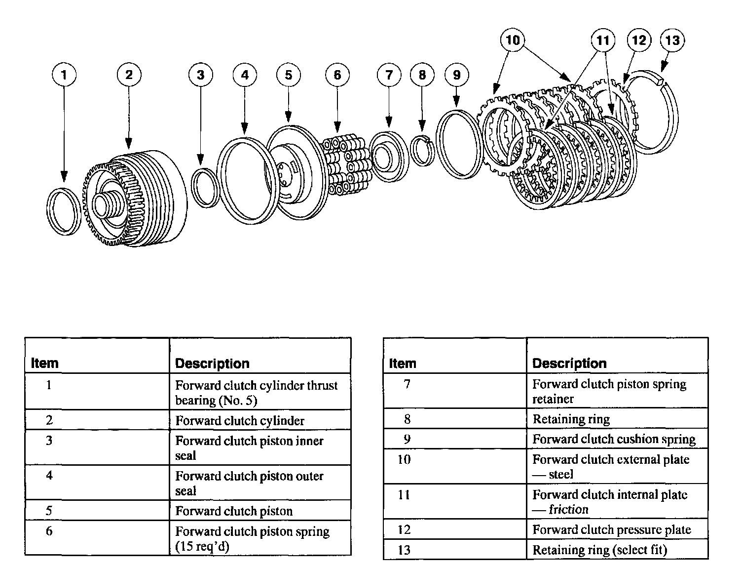 - The forward clutch is applied with hydraulic pressure and disengaged by return springs and the exhaust of the hydraulic pressure.