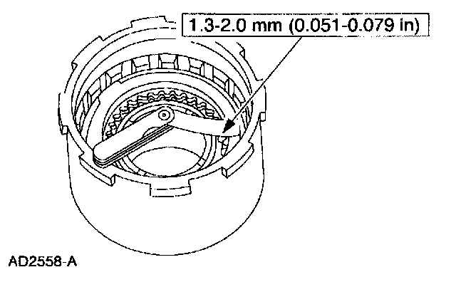 - If specifications do not match use a select fit direct clutch retaining ring to match specifications and verify with a feeler gauge.