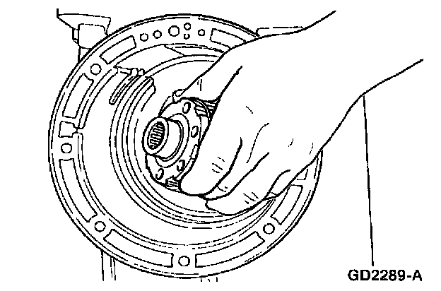46. Remove the front ring gear, front one-way clutch assembly, and center shaft as an assembly.
