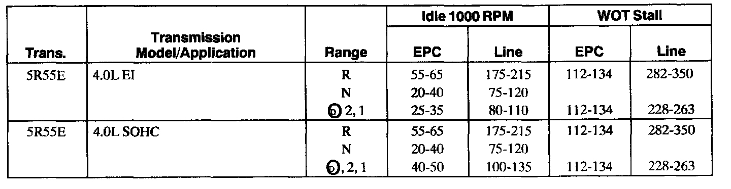 5. Restart engine and check EPC pressure. Refer to reference Line Pressure Chart for specification.