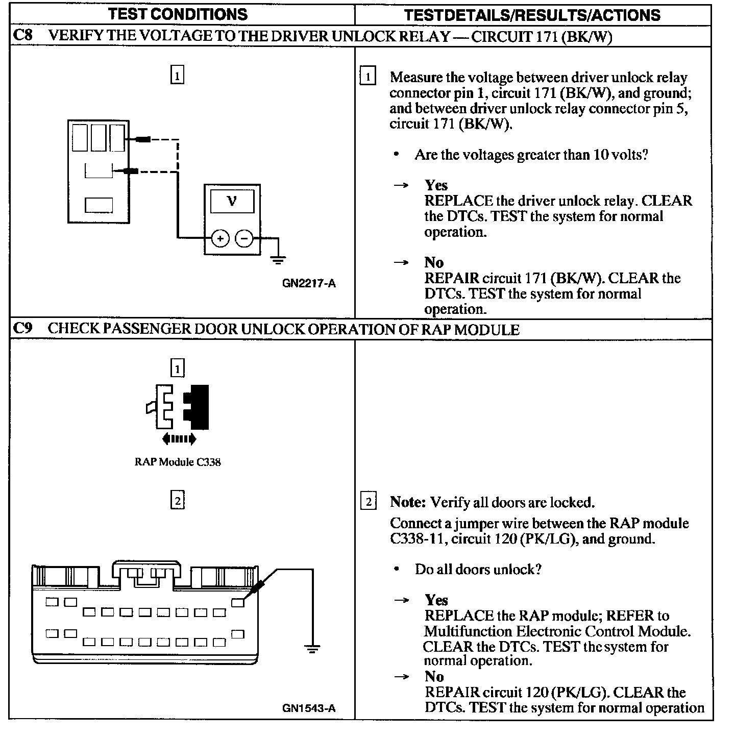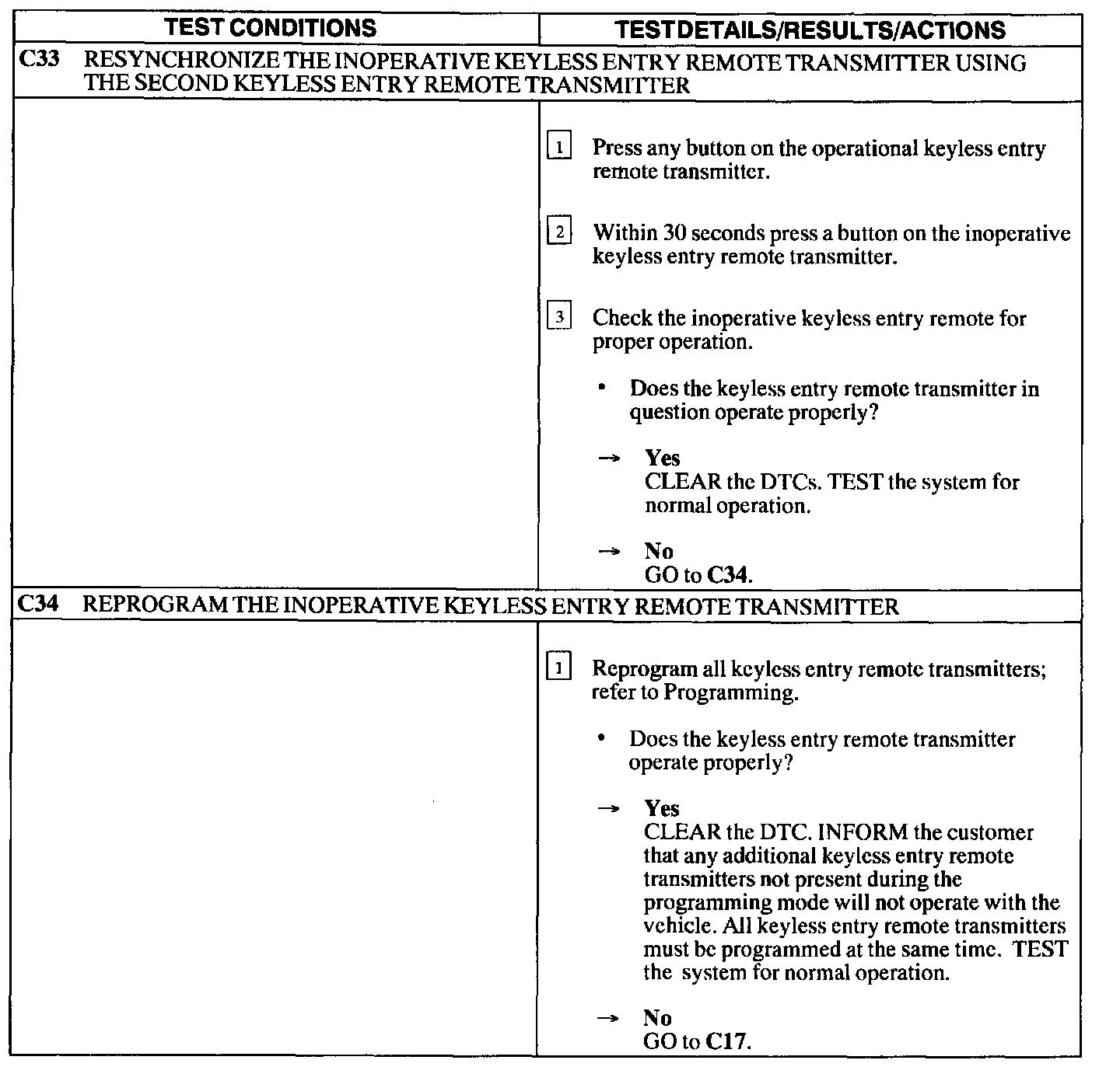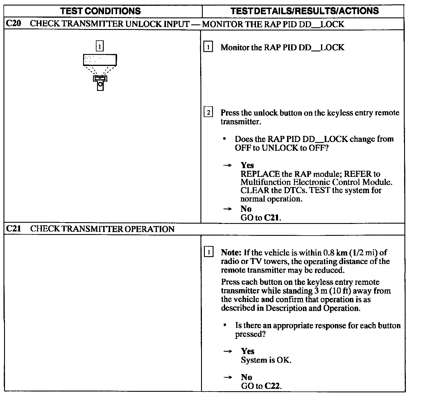Test C: Doors Do Not Lock/Unlock Using the Remote Transmitter - If Equipped with Two Step Unlocking