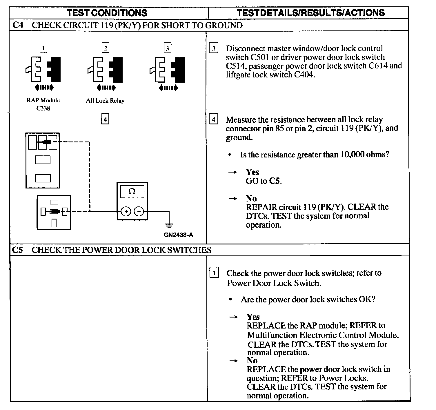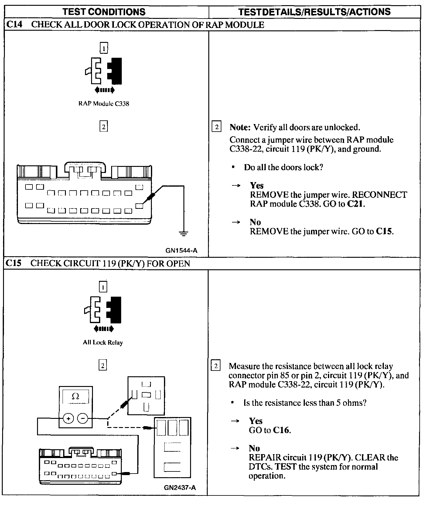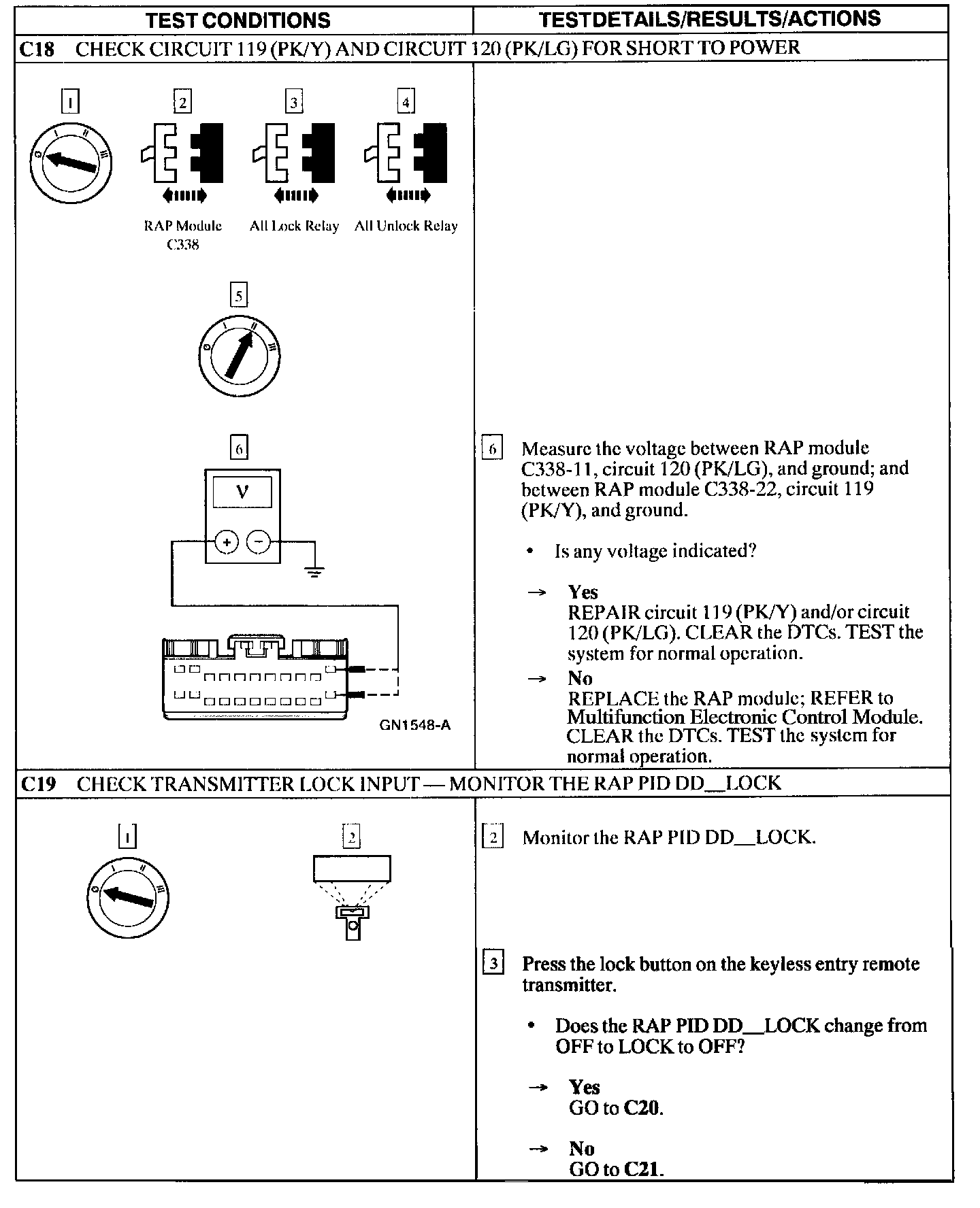 Test C: Doors Do Not Lock/Unlock Using the Remote Transmitter - If Equipped with Two Step Unlocking