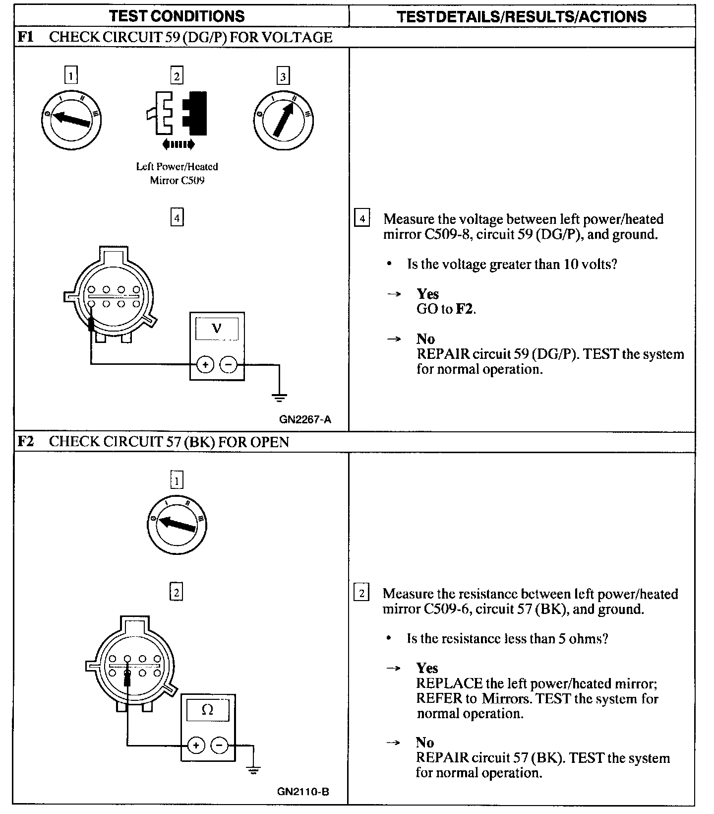 Test F: Heated Outside Mirror Does Not Defrost - Left Mirror