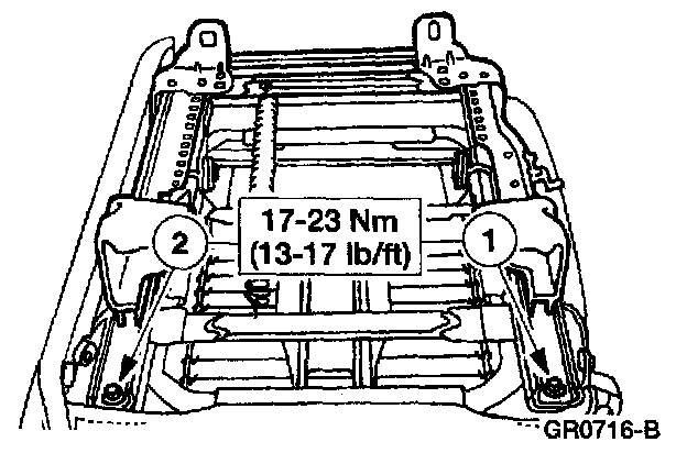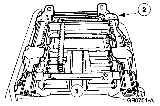 1 Remove the seat track to seat cushion rear bolts.