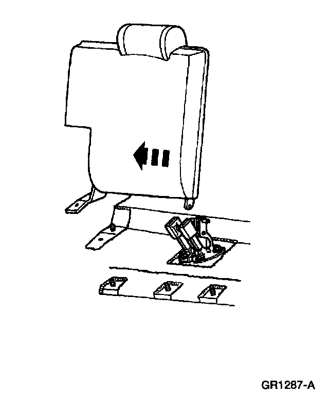 1. Install the seat back (with link arm) onto the pin on the center pivot bracket and position the seat onto the floor pan.