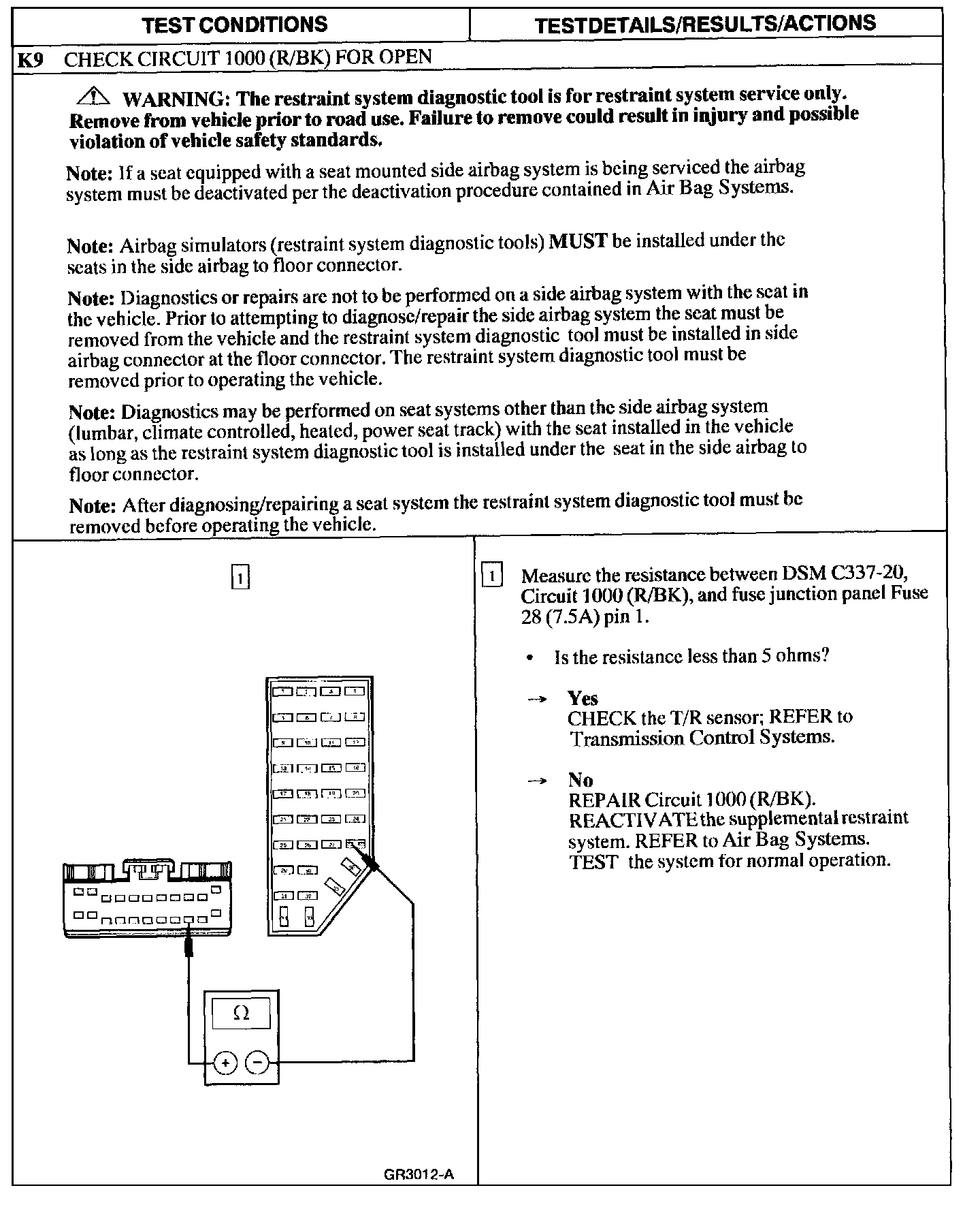 Test K: No Communication With the Module - Unable to Perform On-Demand Self-With the Driver Seat Module