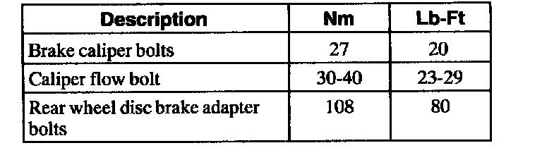 Rear Brake - Torque Specifications: