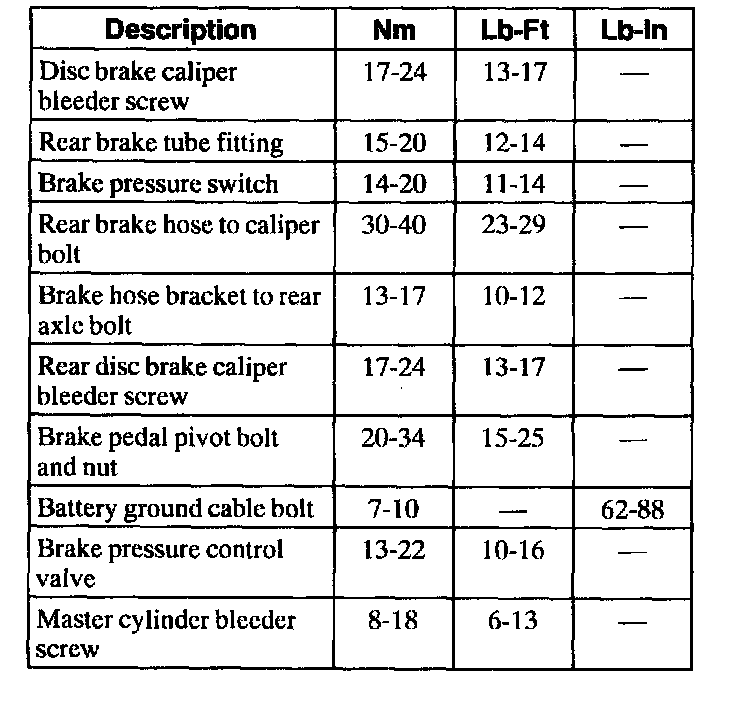 Torque Specifications