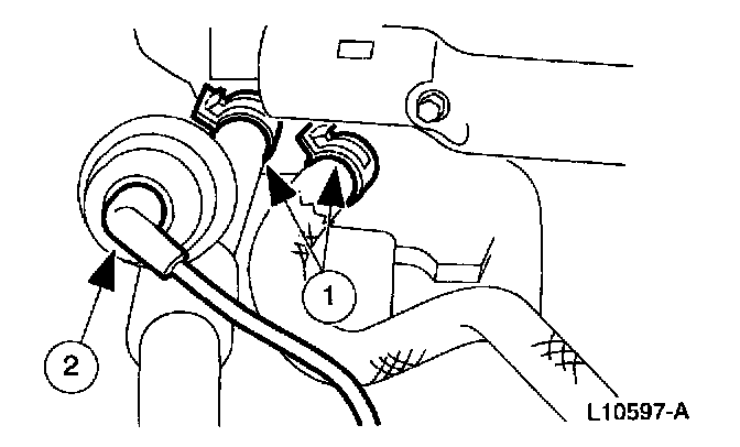 NOTE: Installation of a new [1][2]suction accumulator/drier is not required when repairing the air conditioning system except when there is physical evidence of system contamination from a failed A/C compressor or damage to the suction accumulator/drier. If an A/C evaporator core leak is suspected, the A/C evaporator core must be leak tested before it is removed from the vehicle.