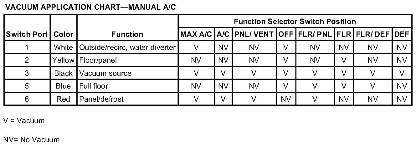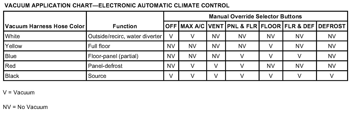 Vacuum Application Chart - Electronic Automatic Climate Control