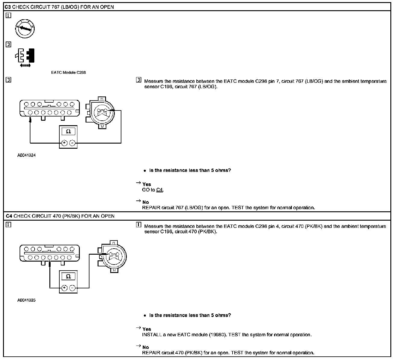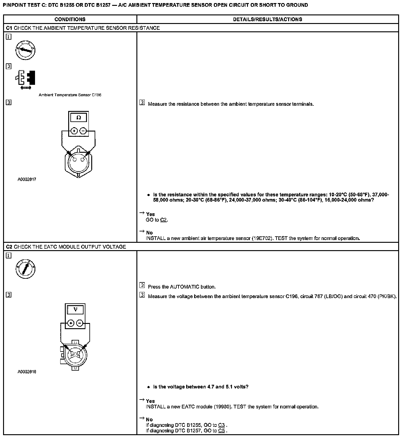 Pinpoint Test C: DTC B1255 or DTC B1257 - A/C Ambient Temperature Sensor Open Circuit or Short to Ground