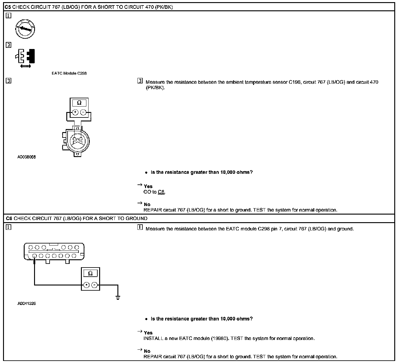 Test C: DTC B1255 or DTC B1257 - A/C Ambient Temperature Sensor Open Circuit or Short to Ground