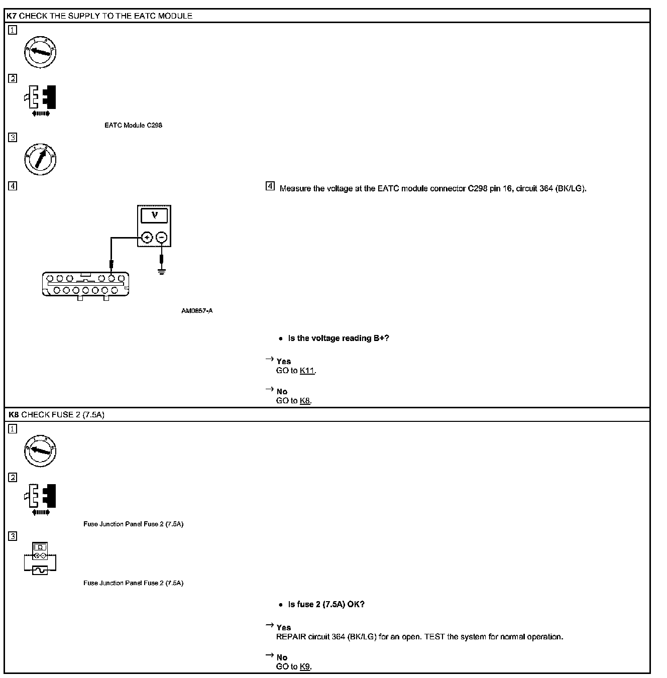 Pinpoint Test K: The A/C Does Not Operate/Does Not Operate Correctly - EATC