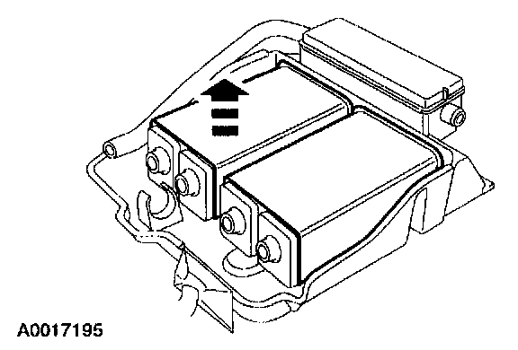 5. Remove the evaporative emission canister with bracket assembly.