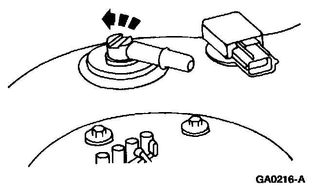 ^ Press down and rotate the fuel vapor vent valve counterclockwise and remove it from the fuel tank.