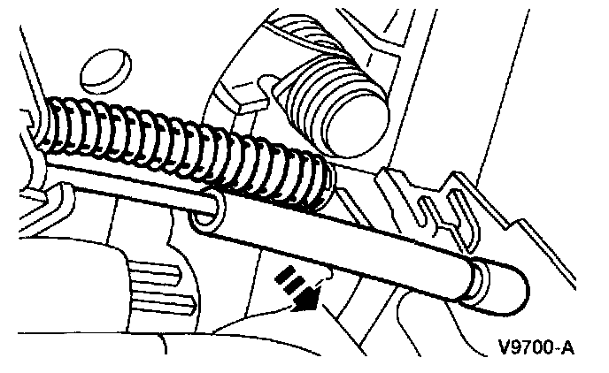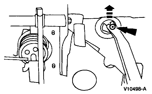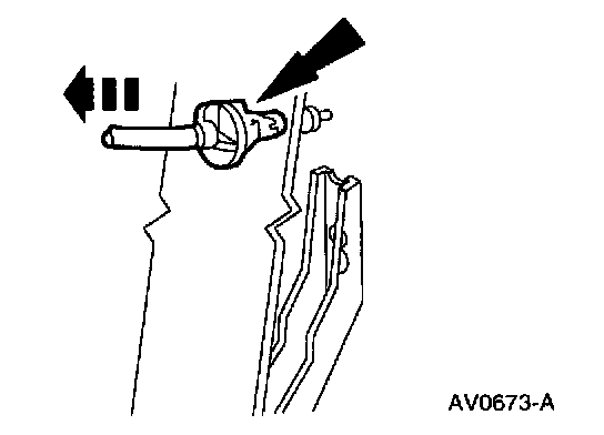 5. Collapse the clips at the dash panel and push the accelerator cable through the dash panel into the engine compartment and remove the accelerator cable.