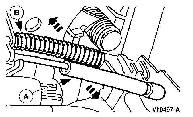 3. Separate the (B) accelerator cable from the (A) speed control actuator cable.