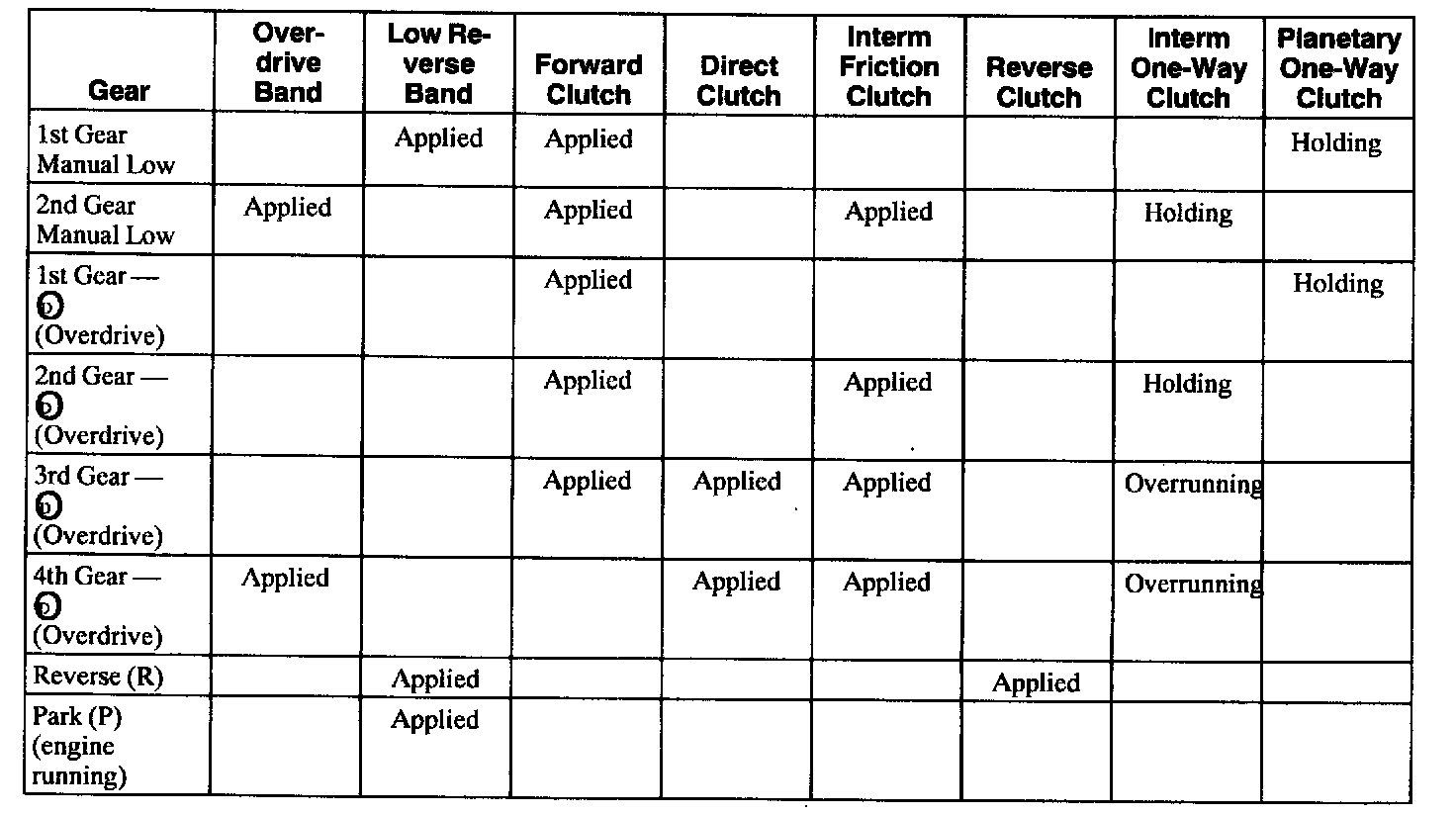 Reference: Band/Clutch Application Chart 601