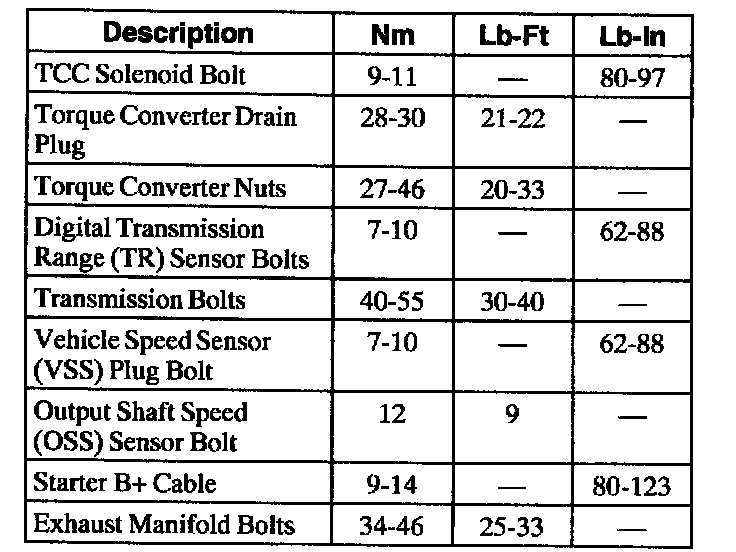 Torque Specifications