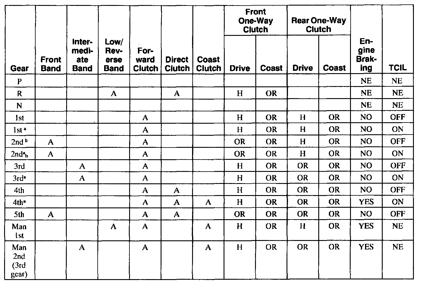 Band/Clutch Application Chart No. 601