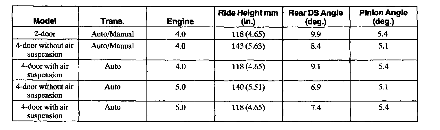 4X4, Rear Driveline Angles @ Curb Specifications