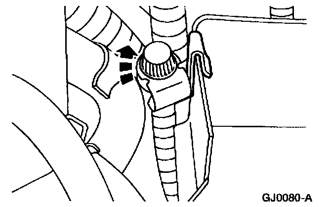 2. Remove the evaporative emissions service port from the battery tray.
