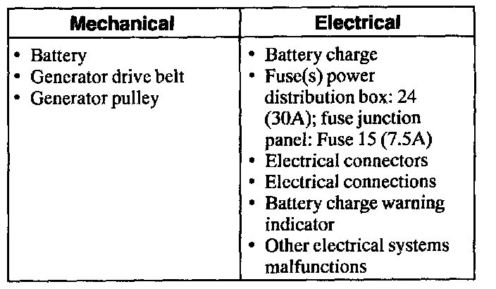 1 The charging system warning indicator will illuminate with the ignition switch in RUN and the engine OFF.