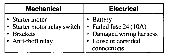 NOTE: When working on the starter system, make sure the anti-theft system is deactivated, if equipped.