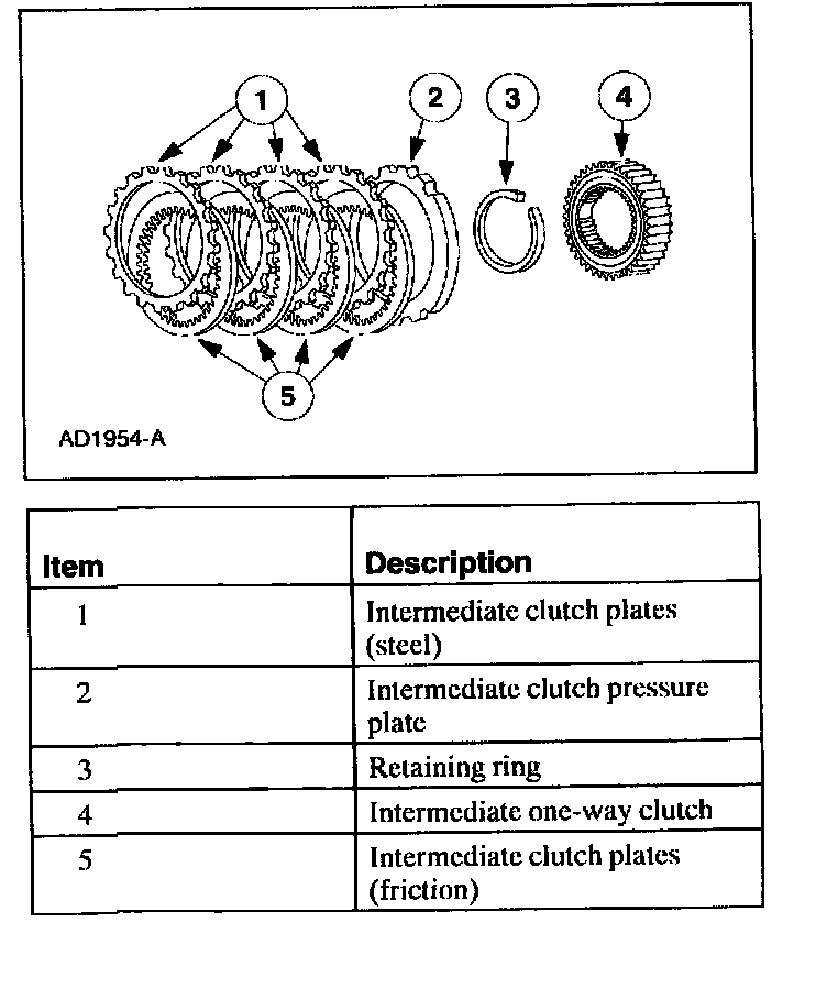 The intermediate clutch works with the intermediate one-way clutch to hold the reverse sun gear stationary in second gear. The intermediate clutch remains applied in third and fourth gears, but does not transmit power.