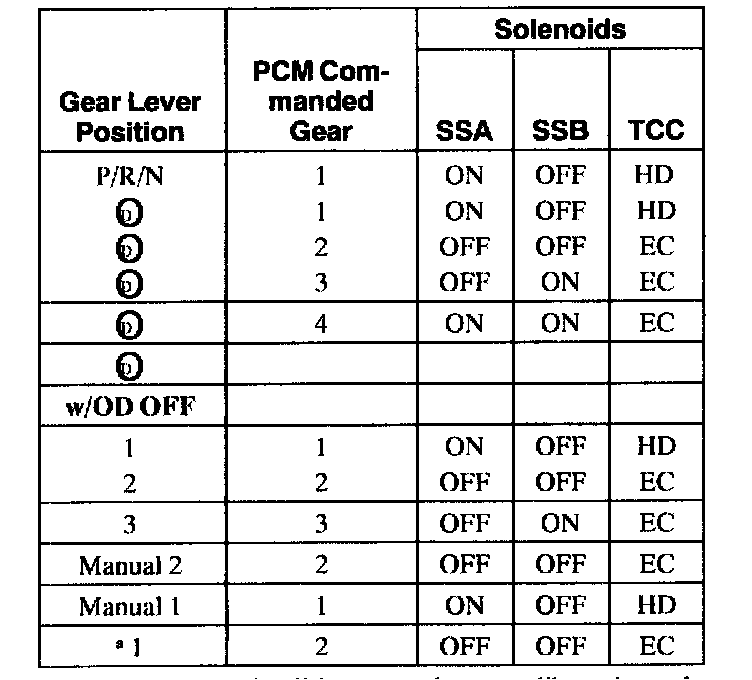 Two on/off shift solenoids provide gear selection of first through fourth gears by controlling the pressure to the three shift valves. One unit containing the two shift solenoids is located in the main control valve body. The shift solenoids are two-way normally open style.