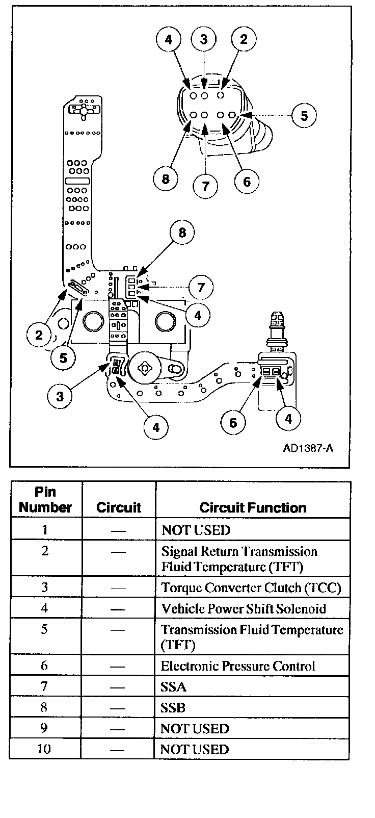 - TR4, TR3A, TR2, and TR1 are all open in Overdrive, so Overdrive is a good position to check for shorts to ground. To determine the shorted components while observing TR_D, unplug the TR and see if the short goes away. If the short is still present, unplug the transmission harness and see if the short goes away. If the short is still present, then the short is in the PCM or vehicle harness. Remove the suspect circuit(s) wire from the PCM vehicle harness. If the short is still present, then the PCM has an internal failure. Otherwise the failure is in the vehicle harness.