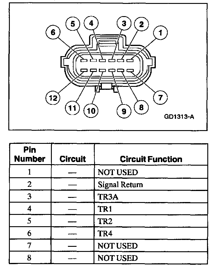- TR4, TR3A, TR2, and TR1 are all closed in park (shorted to signal return), SO Park is a good position to check for intermittent open circuits (with scan tool monitoring TR_D).