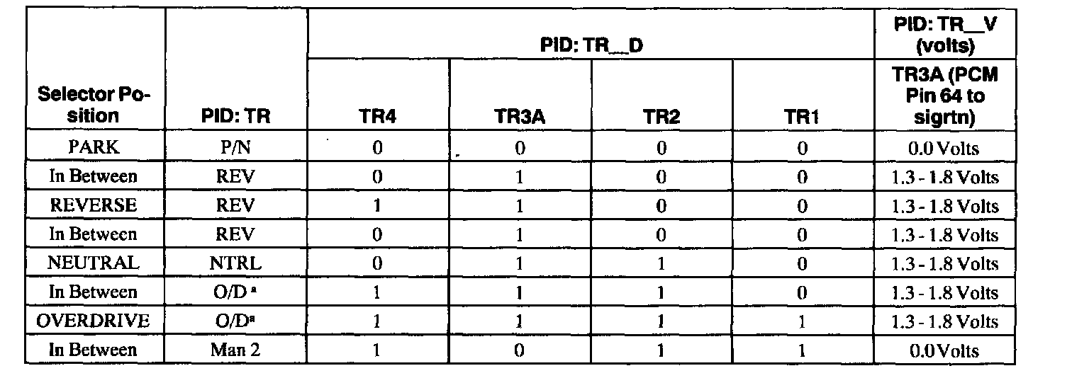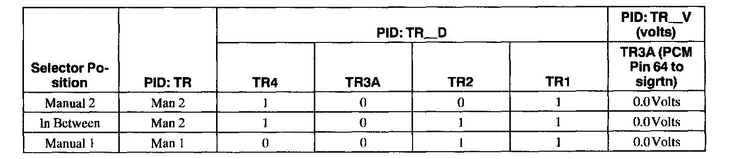- 1.8 - 5.0 volts = Invalid reading (open in wires or bad resistor in digital TR sensor).