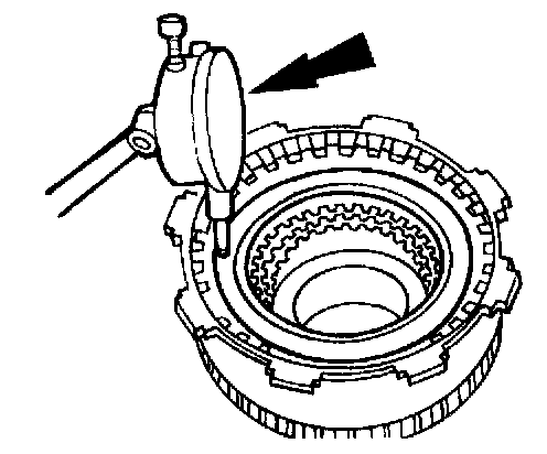 6. Check the clutch hub thrust surfaces for scores and clutch hub splines for wear.