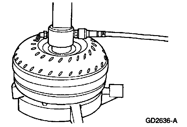 Apply air pressure to valve on the Torque Converter Leak Tester.