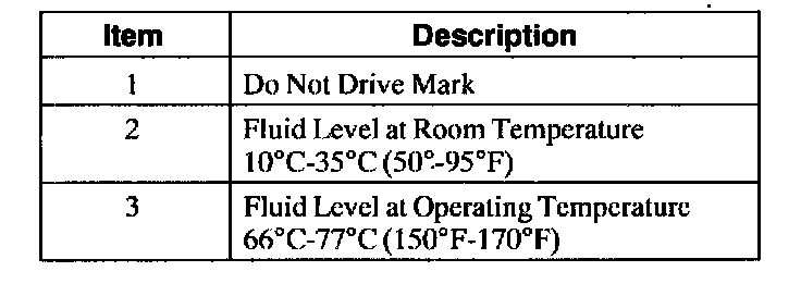 Fluid Level CheckCAUTION: The vehicle should not be driven if the fluid level indicator shows the fluid below the DO NOT DRIVE mark or internal failure could result.