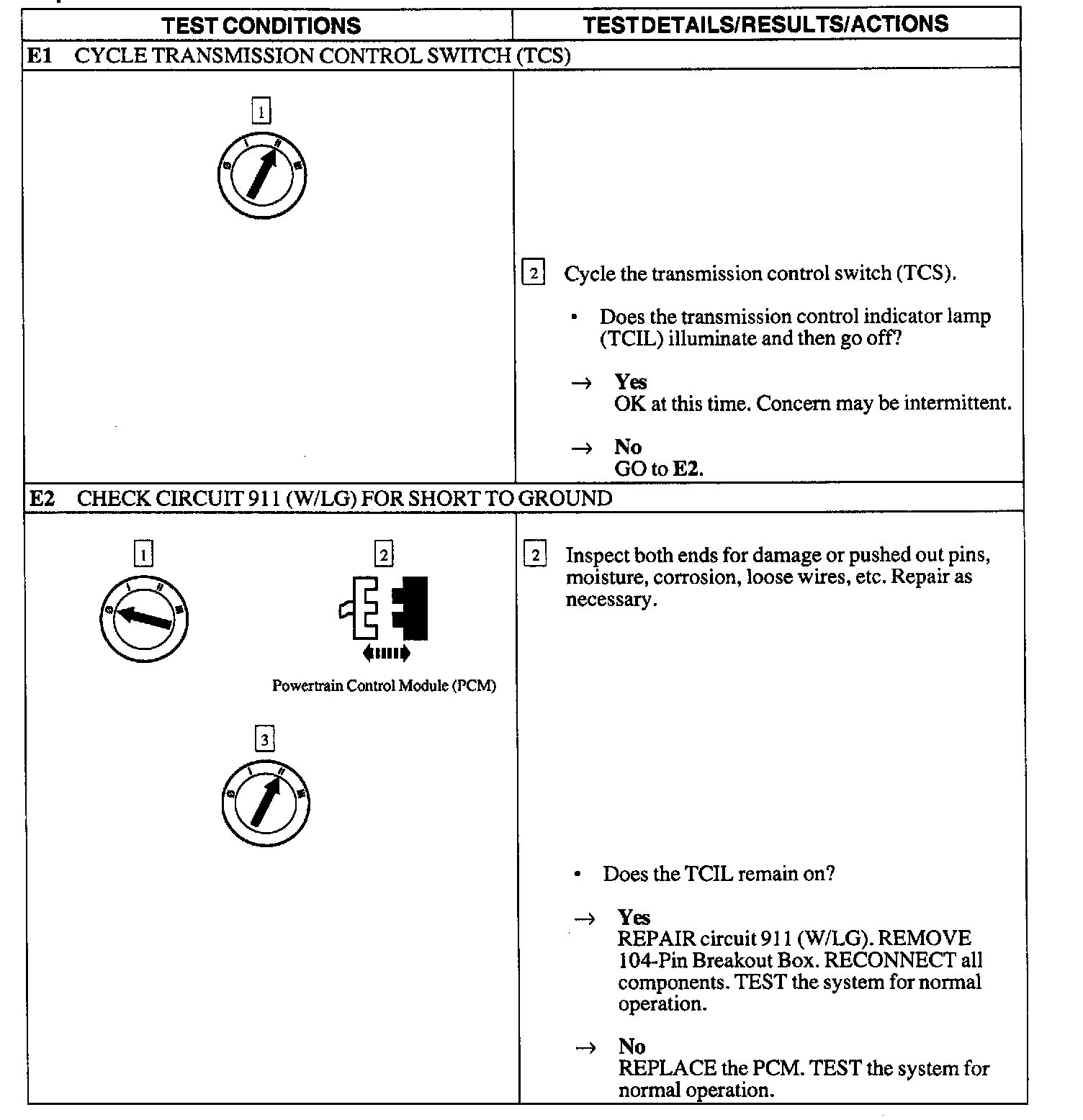Test E: Trans Control Indicator Lamp (TCIL) Stays Illuminated