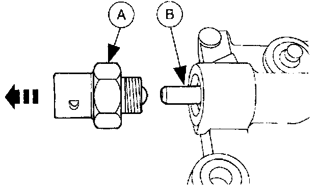 3. Remove the (A) backup lamp switch and the (B) pin.
