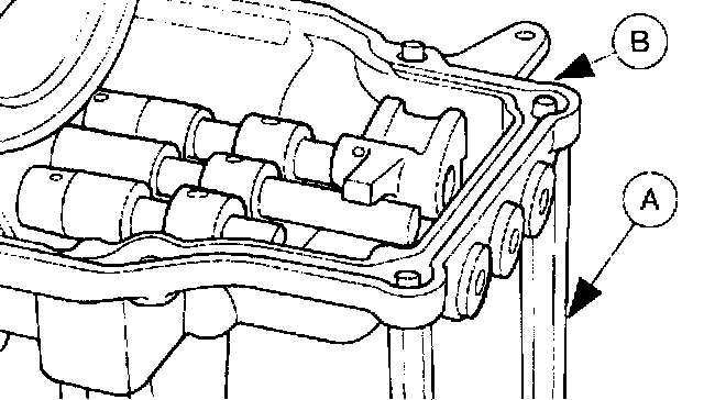 1. Check the contact surface of the (A) shift fork and (B) synchronizer sleeve for wear or damage.