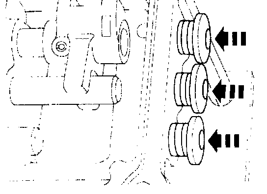 7. Install the three rubber service bore plugs.