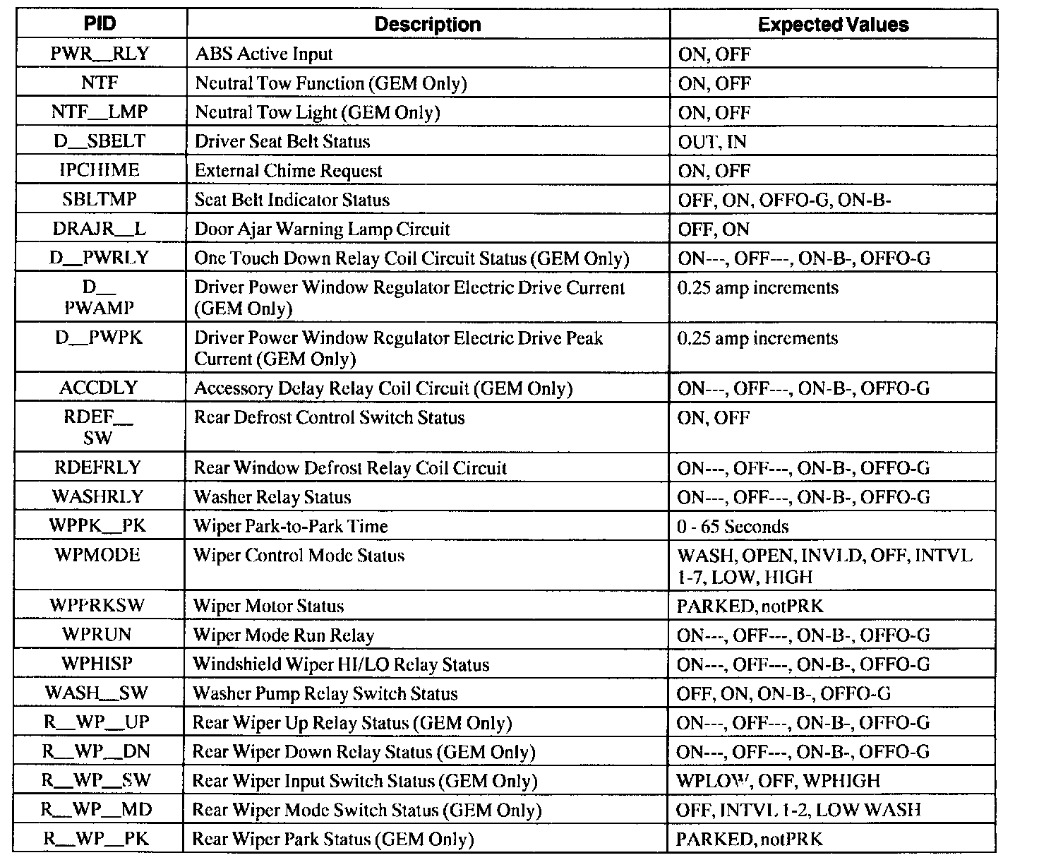 GEM/CTM Parameter Identification (PID) Index