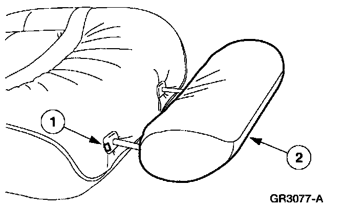 1 Insert the outboard side of the air bag deployment chute between the scat back pad and the side air bag module, pulling it around the outboard side of the seat back frame.