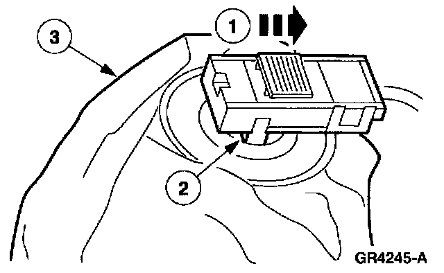 - VEHICLE SENSOR ORIENTATION IS CRITICAL FOR PROPER SYSTEM OPERATION. IF A VEHICLE EQUIPPED WITH AN AIR BAG SUPPLEMENTAL RESTRAINT SYSTEM (SRS) IS INVOLVED IN A COLLISION, INSPECT THE SENSOR MOUNTING BRACKET AND WIRING PIGTAIL FOR DEFORMATION. REPLACE AND PROPERLY POSITION THE SENSOR OR ANY OTHER DAMAGED SUPPLEMENTAL RESTRAINT SYSTEM (SRS) COMPONENTS WHETHER OR NOT THE AIR BAG IS DEPLOYED.
