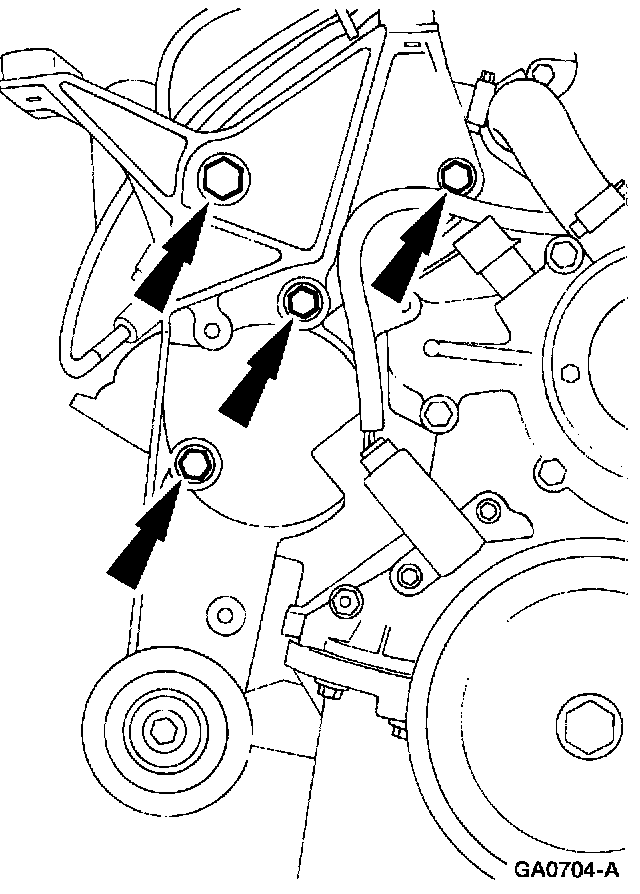 2. Remove the bolts and remove the generator mounting bracket.