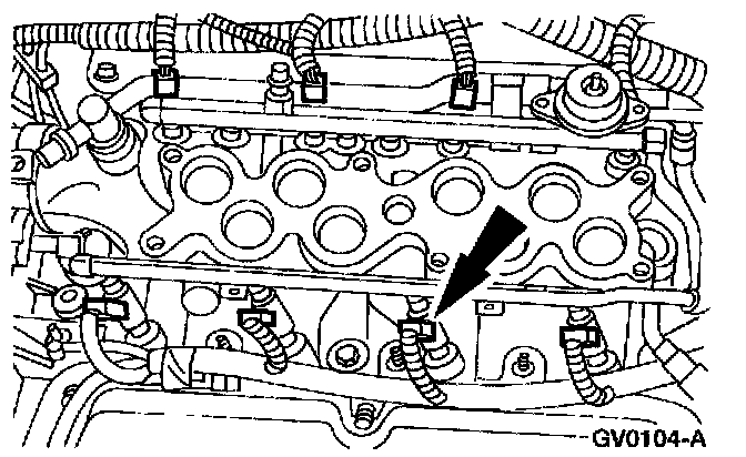 14. Lift the intake manifold and disconnect the two vacuum management valve (VMV) connections and the two PCV heater hoses.
