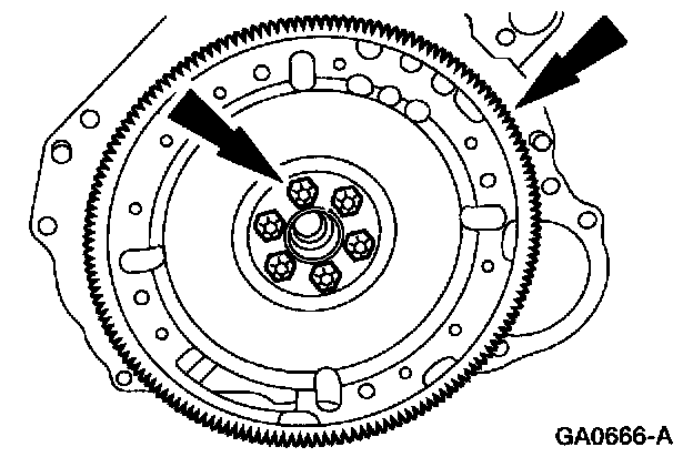 41. Remove the bolts and remove the flywheel.