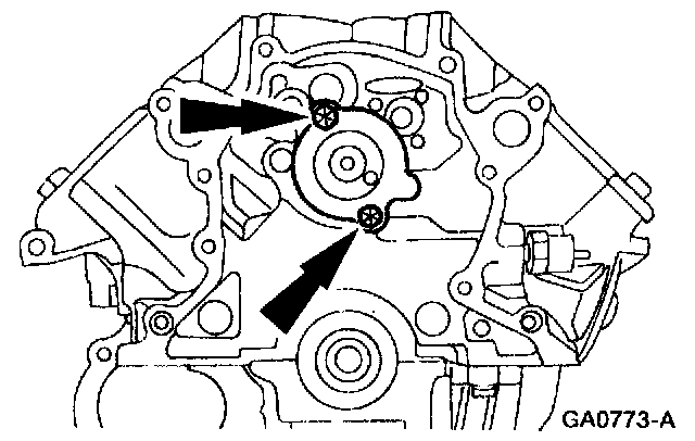 50. Remove the bolts and the oil pump.