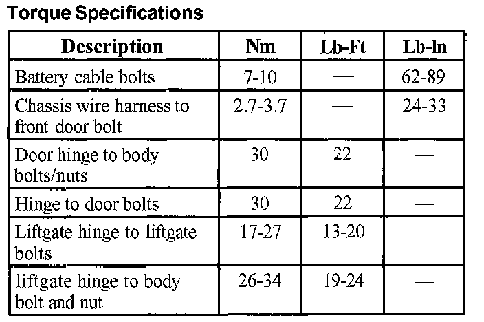 Torque Specifications:
